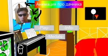 Да-да эта анимация сделана про Дачника (именно тот,кто снимал читеров в амонг ас!). Ваша задача собрать медальки , просто нажимая на разные штуки. Если вам понравится, то я сделаю 2 часть.